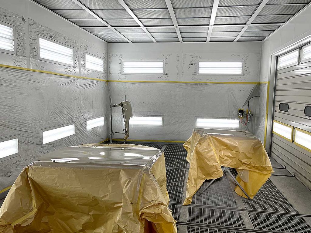 エムランドでは塗装ブースという設備を完備しています。この中は密閉されており、温度や風の流れを機械でコントロールし、ゴミやホコリをシャットアウト。環境を考え人体にやさしく、キレイな塗装を実現しています。